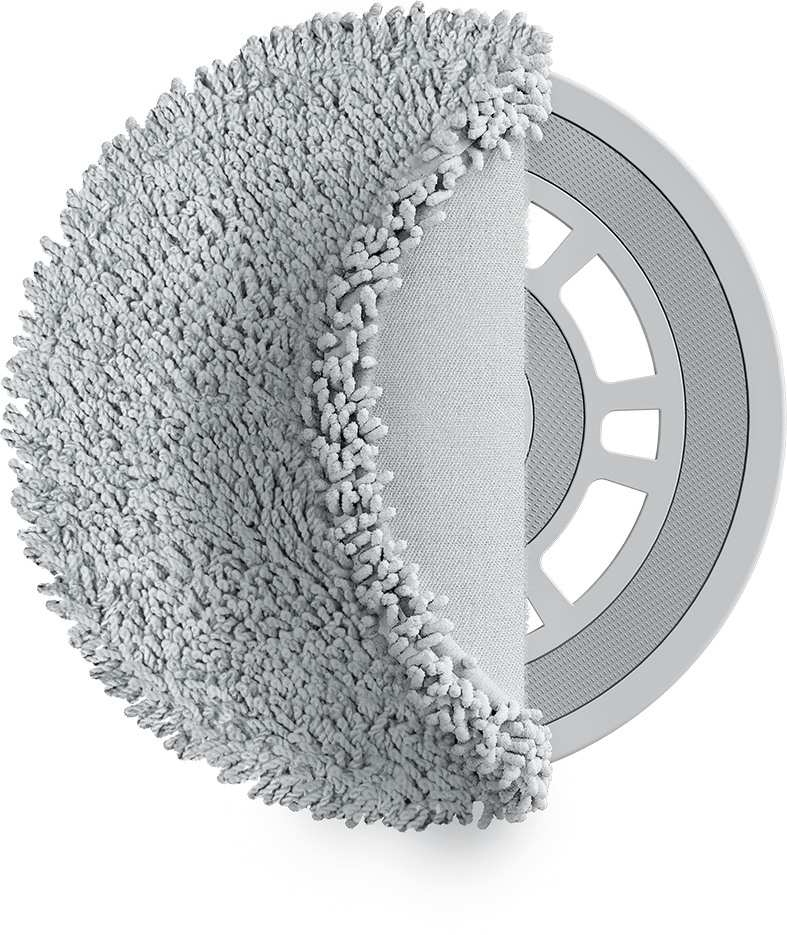 The mop pad, combined with the robot’s design, simulates the action of a manual mop, wiping repeatedly to lift stains.