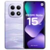 The Redmi Note 15 (8GB RAM/256GB Storage) features a 6.77-inch 120Hz AMOLED display (3200 nits peak), 108MP main camera, and a 5520mAh battery with 45W fast charging. It is powered by the Snapdragon 6 Gen 3 chipset (or Helio G100 in some regions), running on HyperOS 2. The device boasts an IP65 durability rating, thin 7.35mm design, and stereo speakers.