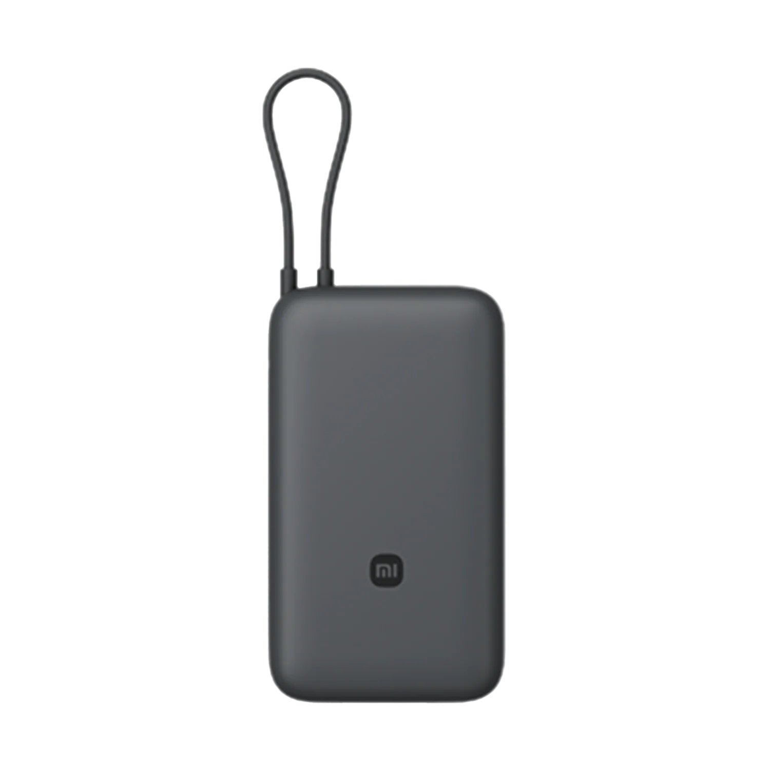 The Xiaomi Power Bank 20000mAh (Integrated Cable) GL in Dark Gray is a high-capacity portable charger featuring a built-in USB-C cable for convenience and support for 22.5W two-way fast charging. It is designed for multi-device users, allowing up to three devices to be charged simultaneously via its integrated cable, an additional USB-C port, and a USB-A port.