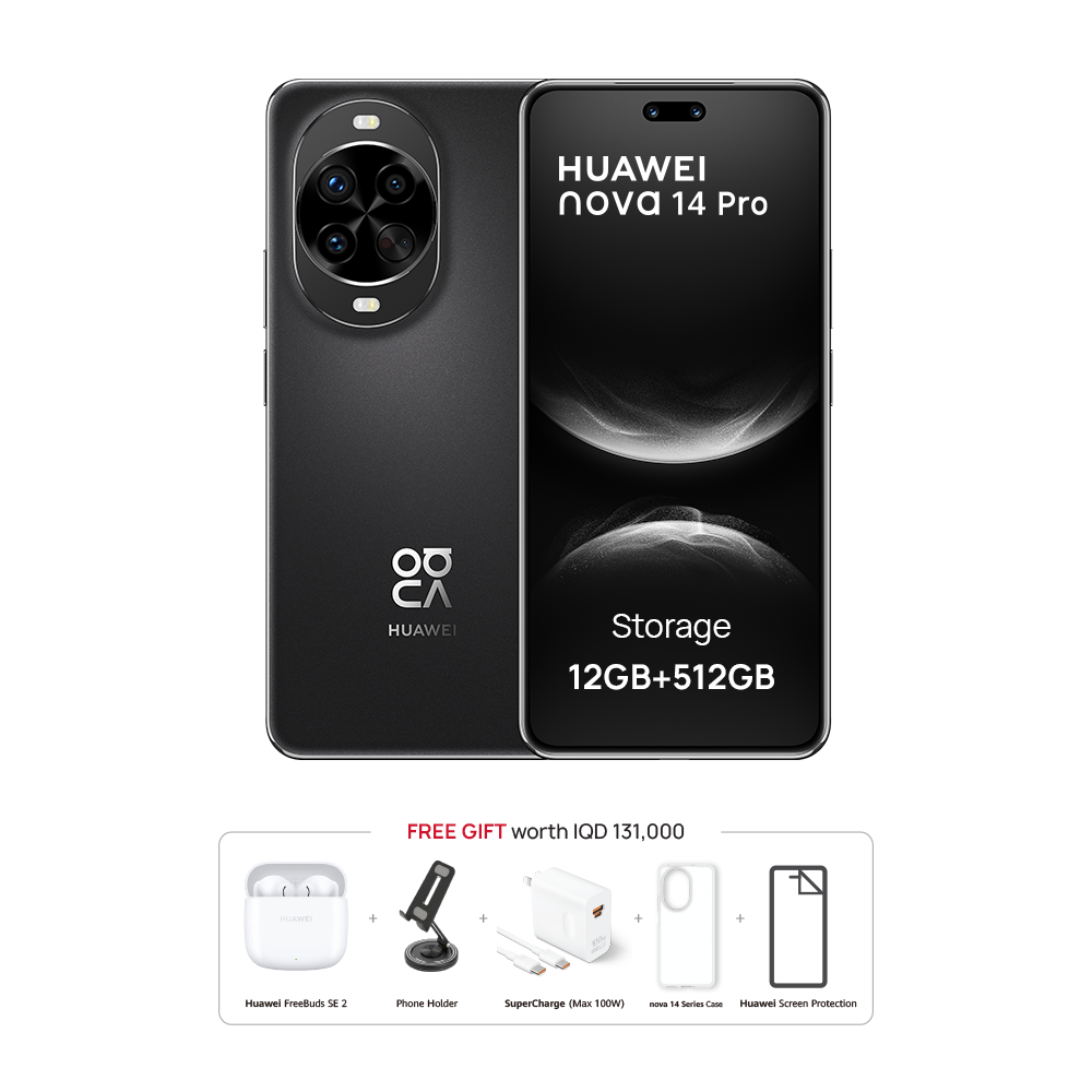 The HUAWEI nova 14 Pro’s key features are its advanced camera system, which includes a 50 MP rear camera with variable aperture and a 50 MP front camera, plus 100 W fast charging. It also boasts a 6.78-inch 120Hz OLED display, the Kirin 8020 processor, and a large 5500 mAh battery. The phone features a unique design with a quad-curved display and “Star Orbit Ring